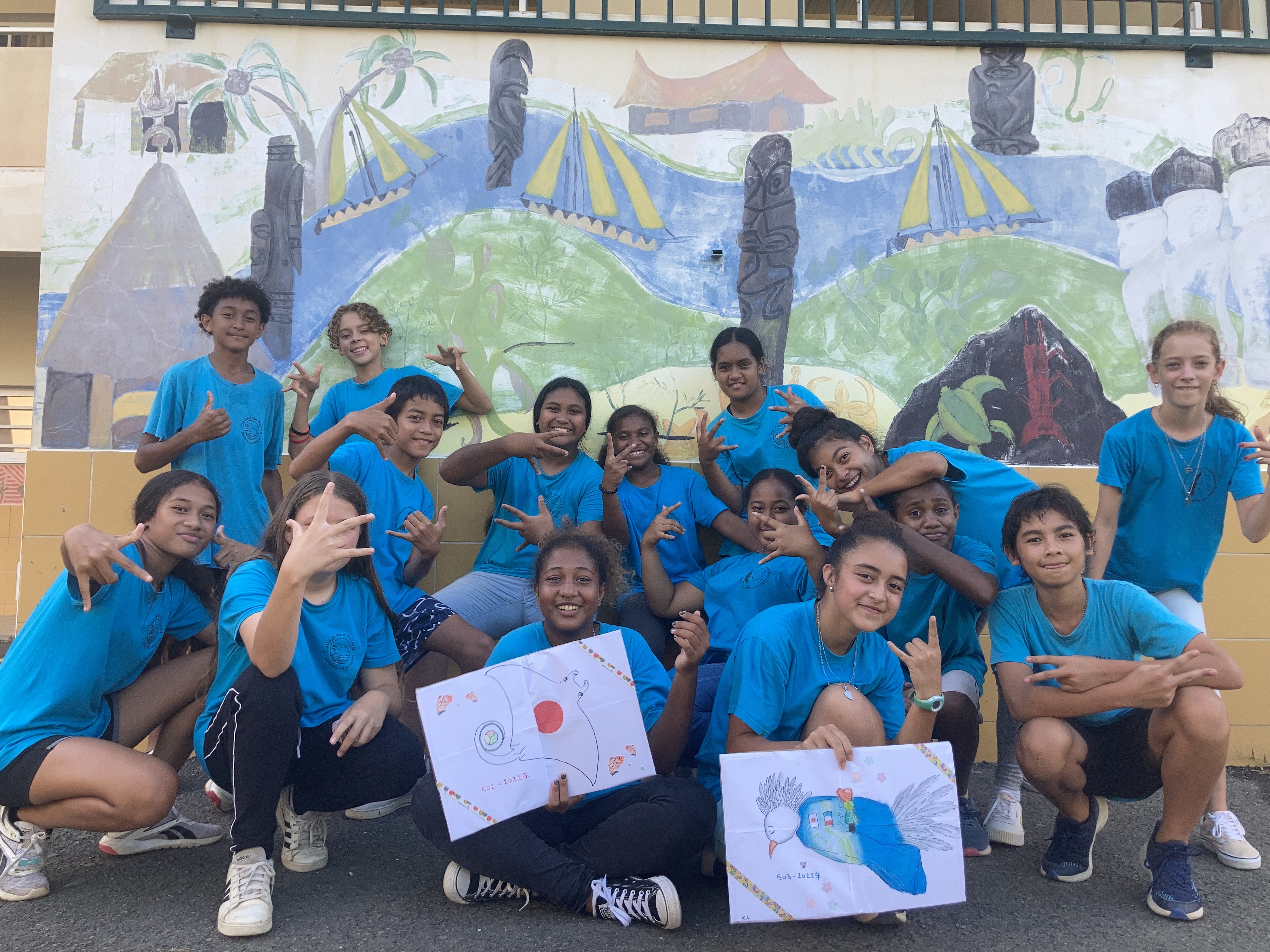 Les élèves de japonais de 502 et de 503 ont participé au concours Festipon organisé par la Maison de la Culture du Japon à Paris. Ils ont dessiné des mascottes aux couleurs du Japon et de la Nouvelle-Calédonie, puis les ont décrites et mis en voix leurs productions afin de valider leurs candidatures. Ces mascottes sont riches de symboles représentant les deux territoires.